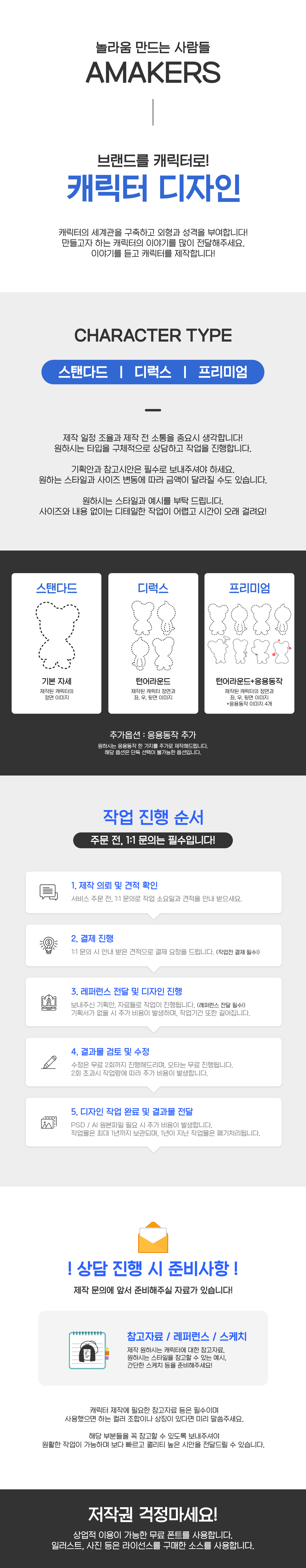 단. 명확한 업체측 미고지 혹은 요청 후 갑작스러운 변경시에 완성도가 떨어질수 있는점 있으니 처음에 자료 전달주실때 다시한번 꼼꼼히 확인후 전달 주시면 좋습니다.