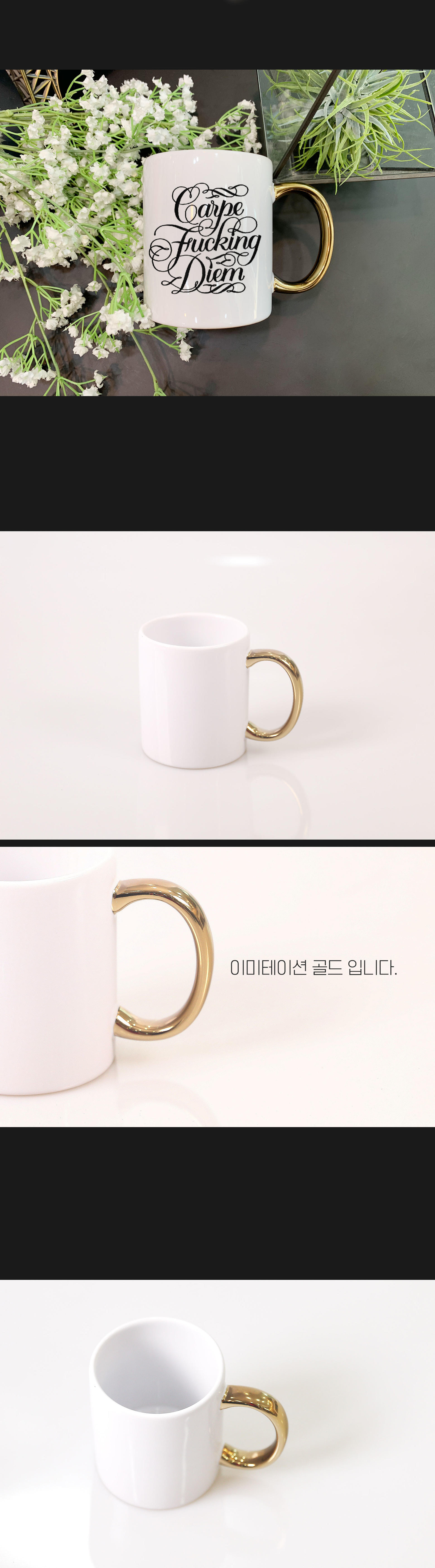 손잡이컬러 골드 머그컵 11oz